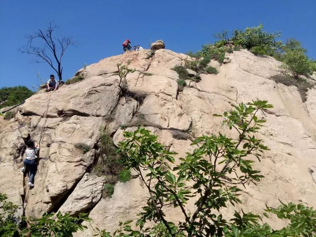 一路上我們都在討論著有關走野線的技巧,有的說走大路好,路上人多,興奮、熱鬧;有的說走小路好,新鮮、刺激;還有的建議去的時候走小路,回來時走大路,這樣什么都能體驗到?就這樣帶著憧憬和想象我們來到了魯山腳下。下了車的我們顯得異常興奮,邁著輕快的步伐,很快就到了魯山的山腳。抬頭望去,看著這高大聳立的青山,同學們更加豪情萬丈!拿起手機來了一張,在拍完合影后,我們就開始了野線之旅-走下繩