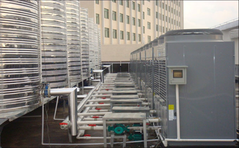 樓頂分別安裝太陽能與空氣源熱泵輔助加熱以及純空氣源熱泵加熱